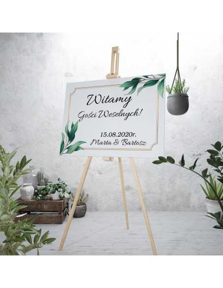 Taka ozdoba może być użyta przy dekorowaniu sali weselnej lub uroczystości w plenerze. Plakat może posłużyć jako powitanie gości weselnych jak i rozpiska stołów. Plakat o wymiarach 50x70cm.